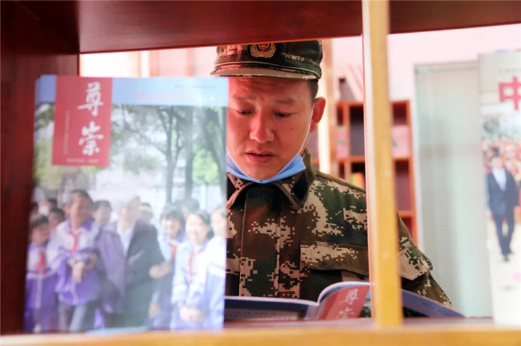 ▲退役軍人白洪生正在書房軍人閱讀專區(qū)看書