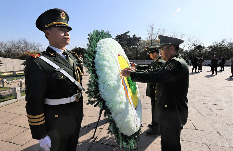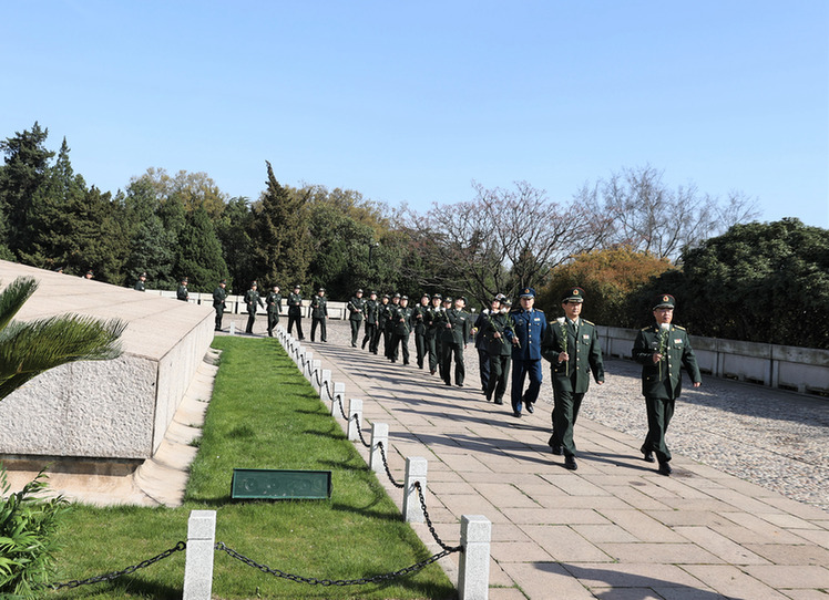緩行、駐足、凝望,伴隨著凝重深沉的《獻(xiàn)花曲》,官兵們緩步繞行紀(jì)念碑一周,滿懷崇敬瞻仰雨花臺(tái)烈士紀(jì)念碑,為犧牲的烈士獻(xiàn)上一朵朵寄托哀思的白菊。