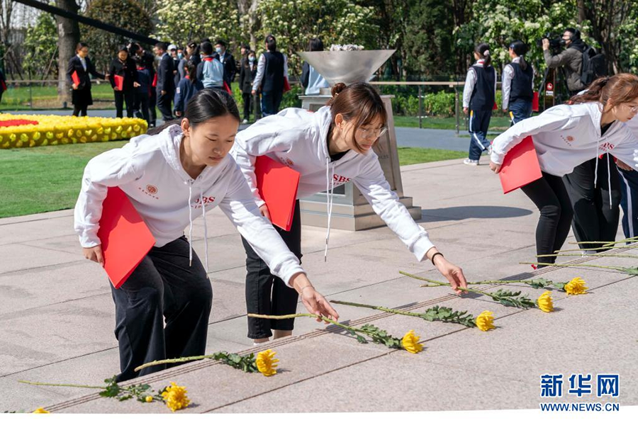 4月4日,參加祭掃活動(dòng)的學(xué)生在龍華革命烈士紀(jì)念地獻(xiàn)花。新華社記者 王翔 攝