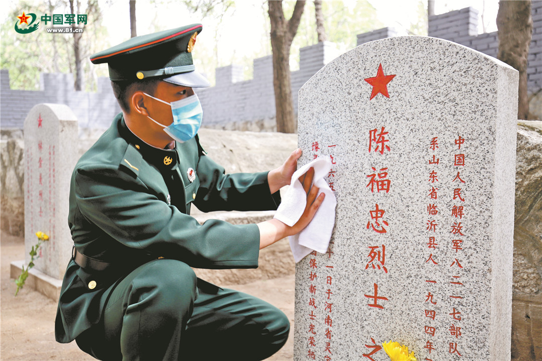鄭州聯(lián)勤保障中心某倉庫官兵為烈士掃墓。郭路華攝