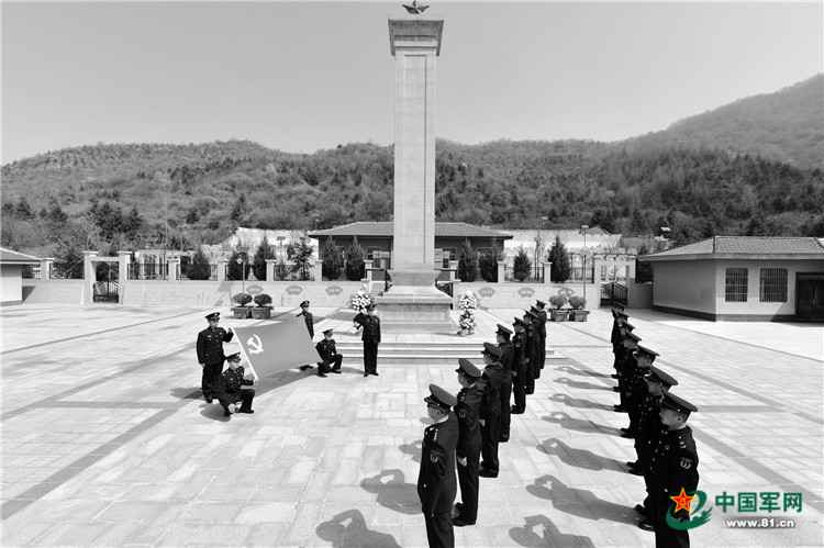 清明前夕,火箭軍某團(tuán)官兵走進(jìn)駐地烈士陵園開展祭奠活動(dòng),并面對(duì)黨旗莊嚴(yán)宣誓。李 羽攝