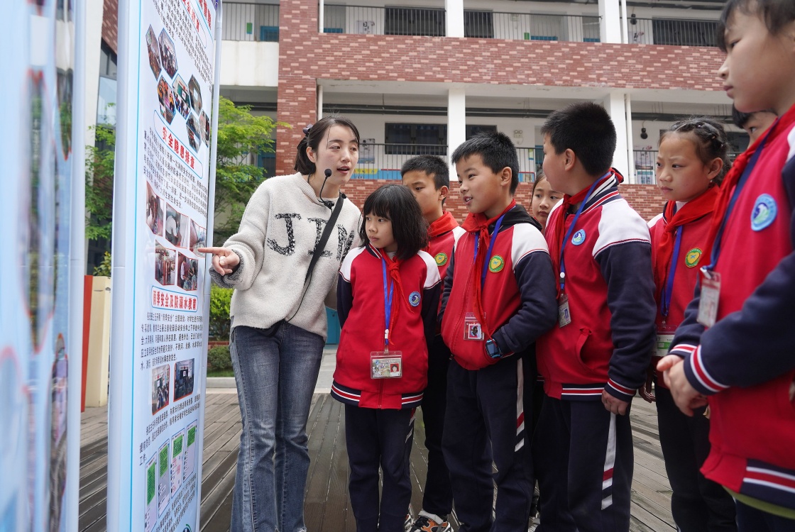 4月14日,老師給灣里五小的學(xué)生們講解保護(hù)自身安全的相關(guān)知識(shí)。新華社記者 萬象 攝