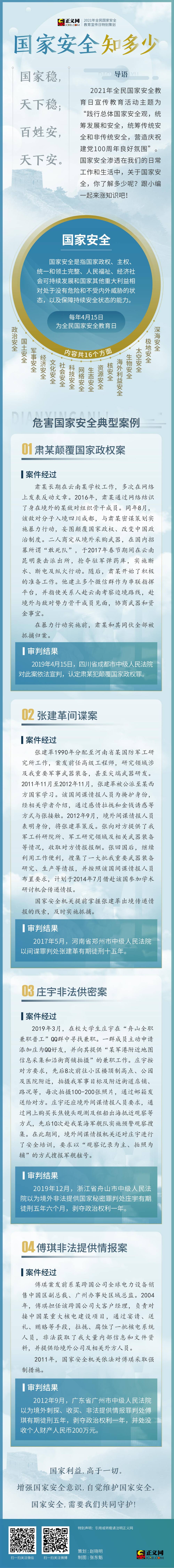 國家穩(wěn),天下穩(wěn);百姓安,天下安。2021年全民國家安全教育日宣傳教育活動主題為“踐行總體國家安全觀,統(tǒng)籌發(fā)展和安全,統(tǒng)籌傳統(tǒng)安全和非傳統(tǒng)安全,營造慶祝建黨100周年良好氛圍”。國家安全滲透在我們的日常工作和生活中,關于國家安全,你了解多少呢?跟小編一起來漲知識吧!