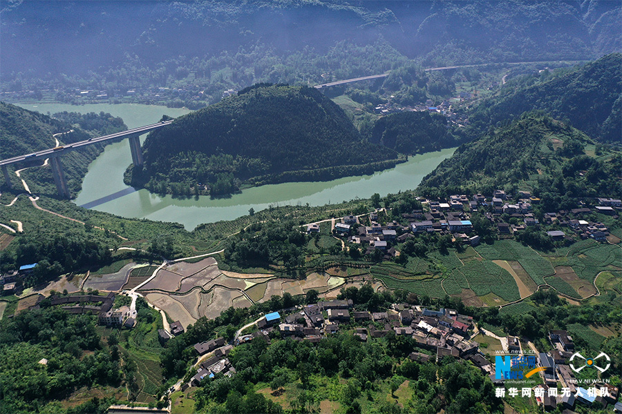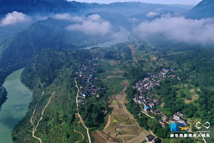 無人機(jī)視角下的大坪村全景。新華網(wǎng)發(fā)(楊敏 攝)