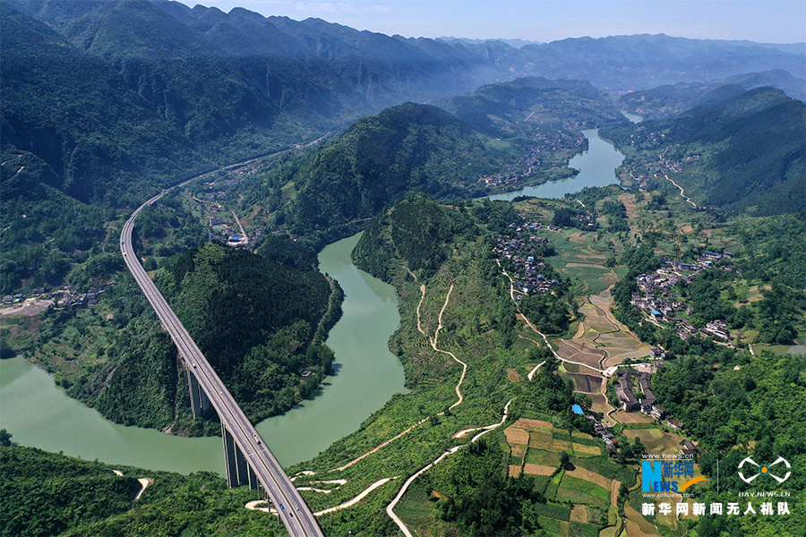 渝湘高速公路阿蓬江特大橋從大坪村穿過。新華網(wǎng)發(fā)(楊敏 攝)