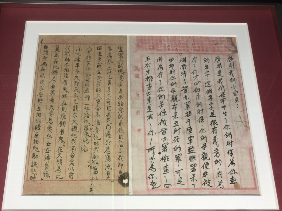 陳覺烈士寫給妻子趙云霄及趙云霄寫給出生僅4個(gè)月的女兒的遺書