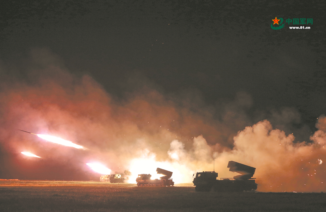 火箭炮夜間集火打擊。