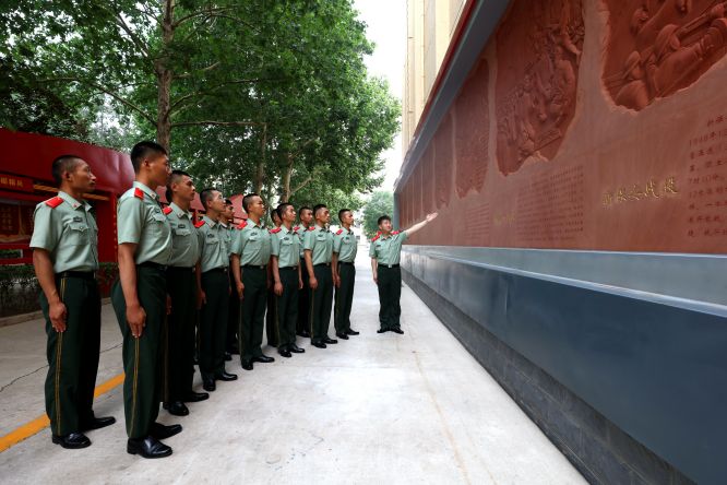圖為新兵們在浮雕墻前聆聽戰(zhàn)斗故事。趙明攝