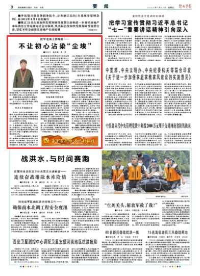 “父親認為只有堅持學習黨的創(chuàng)新理論,才能始終緊跟時代不掉隊?!彼呐畠汗蓰愓f,父親對國家大事非常關心。只要身體允許,每天都會讀書看報。