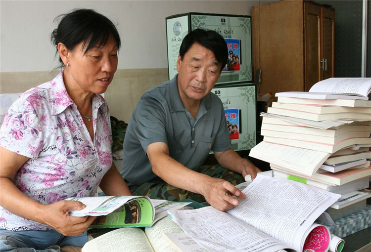 這是張連印和妻子一起查閱資料,學(xué)習(xí)植樹造林和防風(fēng)治沙知識(2007年9月1日攝)。新華社 劉松峰攝