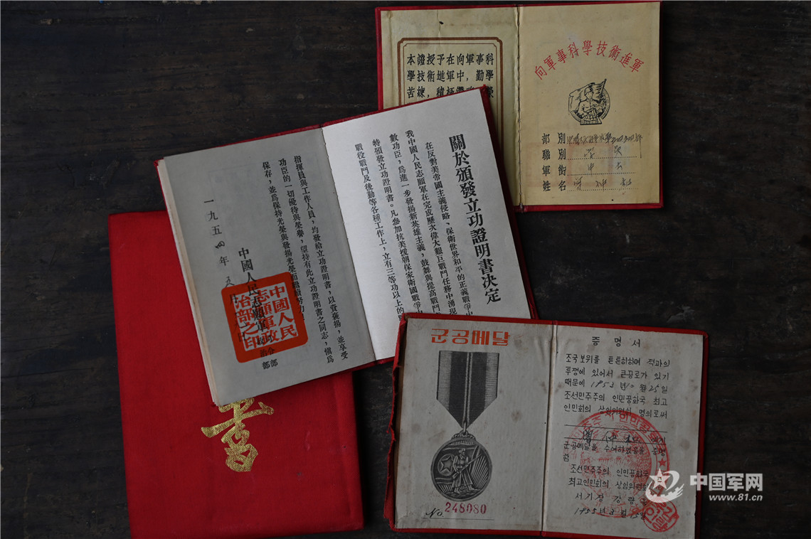 在曾仲和的臥室里,幾個(gè)破舊的大木箱和一張舊書桌很是“搶眼”。女兒曾利華說:“我們幾次想買新的箱子和桌子回來,都被父親嚴(yán)厲制止,因?yàn)檫@些箱子和桌子里放的都是父親從部隊(duì)帶回來的寶貝,輕易不讓人動(dòng)。”舊書桌里存放的是曾仲和的立功證明書和參加抗美援朝戰(zhàn)爭(zhēng)時(shí)的朝鮮文通行證等“珍貴物品”。