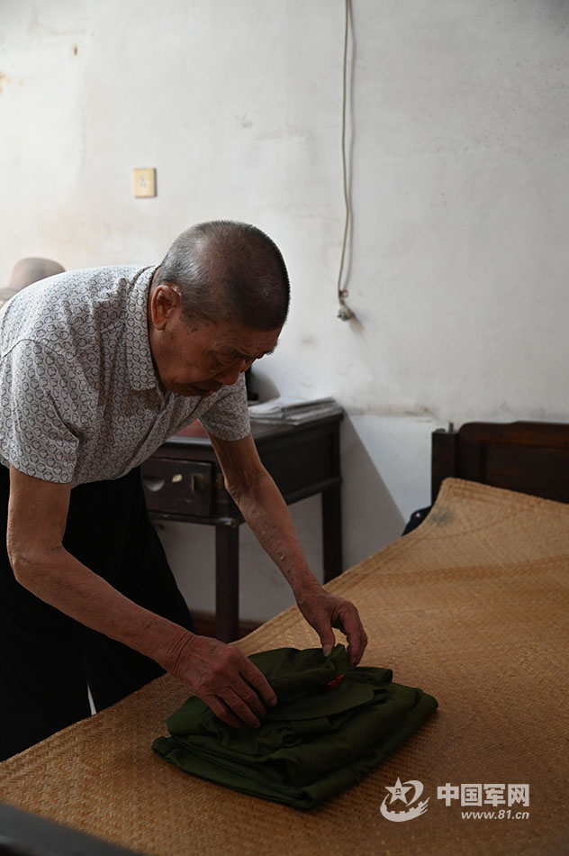 而在一個(gè)舊木箱里,一套解放軍服裝和帽子以及帽徽、領(lǐng)章更是被曾老視如珍寶。他每年都會(huì)把衣服拿出來曬一曬,50多年了,軍裝和軍帽保存得如同新的一般。“部隊(duì)培養(yǎng)了我,給了我一切,特別是讓我晚年生活幸福無(wú)憂,我‘百年’之后,要穿著這身軍裝離開。”