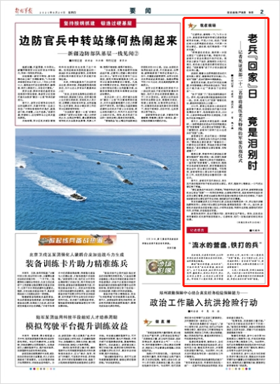 都說“鐵打的營盤,流水的兵”,可他們卻是“流水的營盤,鐵打的兵”。為了完成任務(wù),他們常年扎根荒野、鏖戰(zhàn)深山,有的從軍多年,竟從未回過主營區(qū)、從沒住過主營區(qū)營房。即將脫下心愛的軍裝、離開摯愛的部隊之際,他們唯一的心愿竟是“回家”看看。多么可愛的士兵,多么忠誠的部隊!官兵首次“回家”日,竟是告別軍營時,此情此景怎能讓人不動情落淚?!