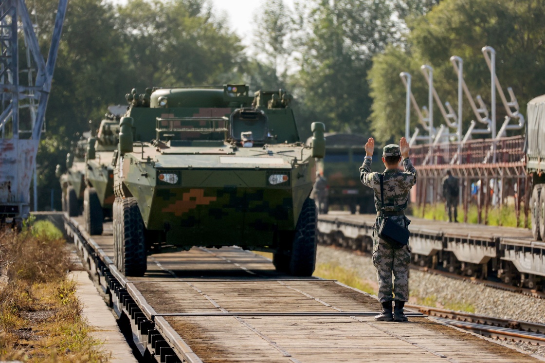 參加“和平使命-2021”聯(lián)合軍演的中方參演部隊在進行鐵運裝載(8月22日攝)。新華社發(fā)(仲崇嶺 攝)