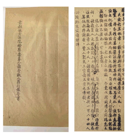 《首都地方法院檢察處奉令調(diào)查敵人罪行報告書》(南京市檔案館提供)