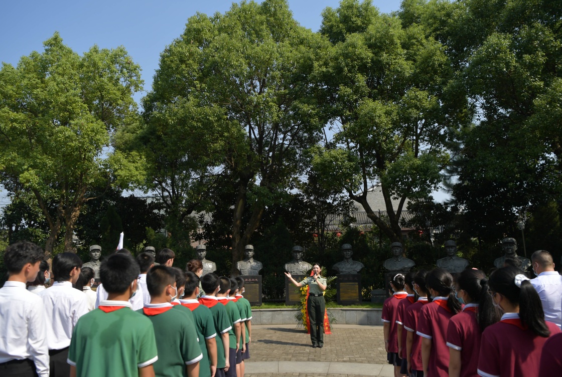 9月18日,在江西省南昌市新四軍軍部舊址陳列館紀念廣場,主持人在講述新四軍抗戰(zhàn)的故事。