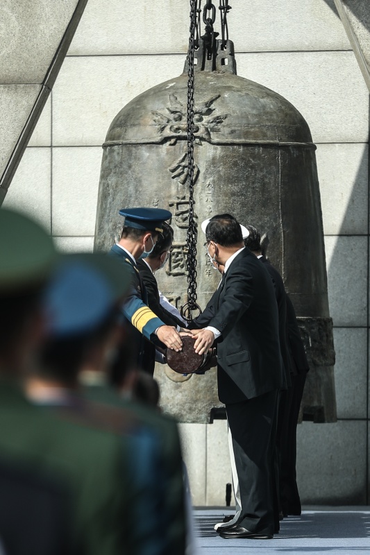 這是9月18日拍攝的勿忘九一八撞鐘鳴警儀式現(xiàn)場(chǎng)。