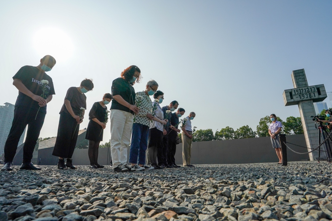 9月18日,南京大屠殺幸存者后代代表在活動(dòng)中默哀。