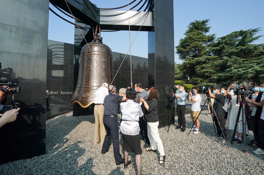 9月18日,南京大屠殺幸存者后代代表在侵華日軍南京大屠殺遇難同胞紀(jì)念館撞響和平大鐘。