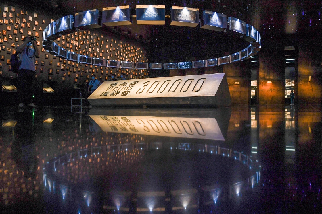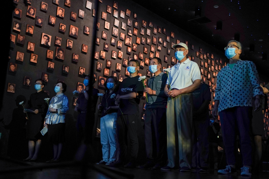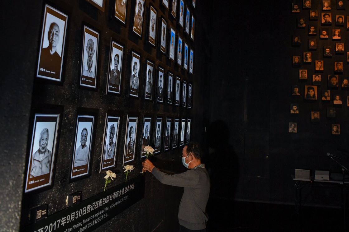 9月18日,人們在侵華日軍南京大屠殺遇難同胞紀念館悼念。
