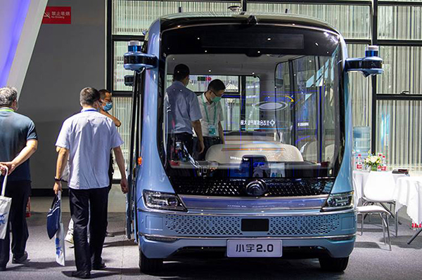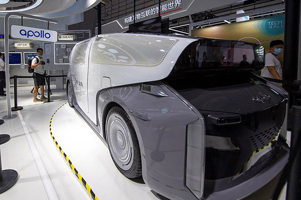 9月26日,在“互聯(lián)網(wǎng)之光”博覽會(huì)上,無人駕駛汽車吸引著許多參觀者的目光。人民網(wǎng)記者 翁奇羽攝