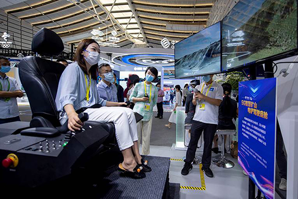 9月26日,在“互聯(lián)網(wǎng)之光”博覽會(huì)上,參觀者正在體驗(yàn)無人駕駛的礦產(chǎn)挖掘設(shè)備。人民網(wǎng)記者 翁奇羽攝