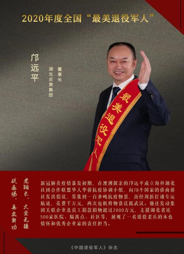 新冠肺炎疫情發(fā)生初期,因航班中斷被滯阻在悉尼的鄺遠平,積極號召在澳洲成立海外湖北社團合作聯(lián)盟華人華僑抗疫協(xié)調小組,向78個國家的僑商僑社發(fā)出倡議,僅在澳大利亞、新西蘭兩國就籌集到100多噸、近千立方米的防護服、口罩、制氧機等急需醫(yī)療物資,歷經(jīng)周折打通專運航道,花費千萬元、兩次包機將物資送抵武漢。他還發(fā)動集團關聯(lián)企業(yè)及員工捐款捐物超過2000萬元,支援湖北省近500家醫(yī)院、隔離點、社區(qū)等,展現(xiàn)了一名退役老兵的本色情懷和優(yōu)秀企業(yè)家的責任擔當。曾獲“湖北省優(yōu)秀政協(xié)委員”稱號。