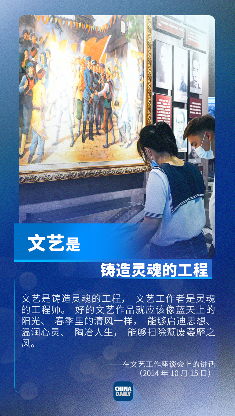 2014年10月15日,習(xí)近平總書記主持召開文藝工作座談會強調(diào),堅持以人民為中心的創(chuàng)作導(dǎo)向,創(chuàng)作更多無愧于時代的優(yōu)秀作品。關(guān)于文藝工作,習(xí)近平總書記有哪些重要論述?中國日報網(wǎng)帶你