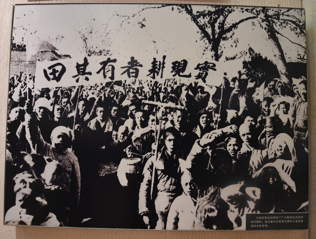 這是在西柏坡紀(jì)念館拍攝的照片,反映的是冀中農(nóng)民舉行擁護(hù)土地改革運(yùn)動(dòng)大會(huì)(2019年4月9日攝)。新華社記者 朱旭東 攝