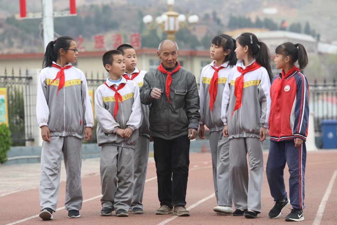 閆青海(中)給孩子們講奮斗創(chuàng)業(yè)的故事(2019年4月8日攝)。閆青海曾作為西柏坡黨員代表受到中央領(lǐng)導(dǎo)同志接見(jiàn),是媒體采訪的熱點(diǎn)人物,村民們都形象地稱他為西柏坡的“代言人”。新華社發(fā)(梁子棟 攝)