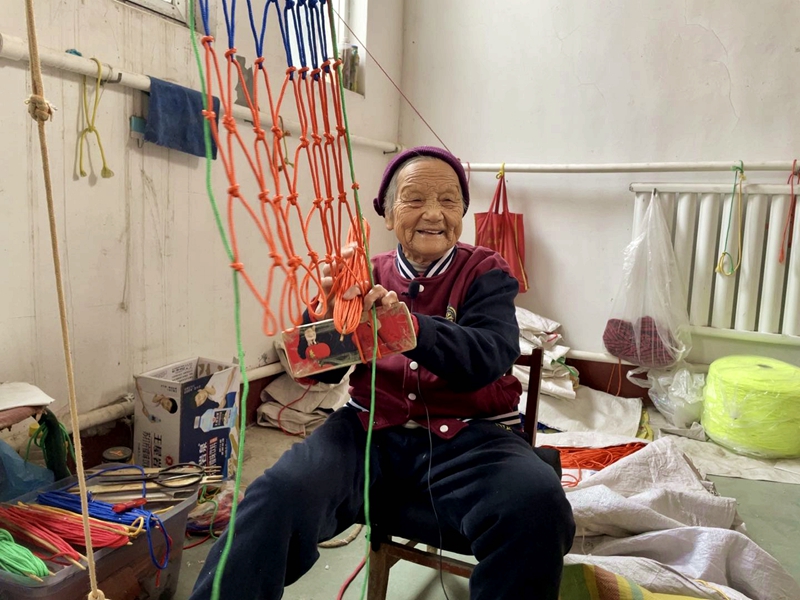 正在編織彩色繩網(wǎng)的鞏祥美 攝影 曹可凡
