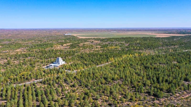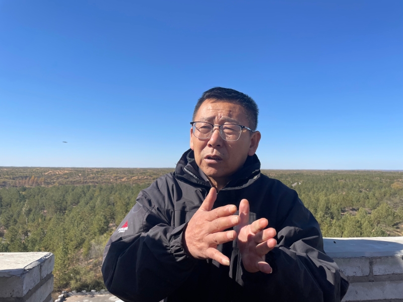 站在被綠植包裹的林區(qū)眺望臺上,遠(yuǎn)看著無邊際的青翠綠洲,張應(yīng)龍講起了這里的治沙故事。