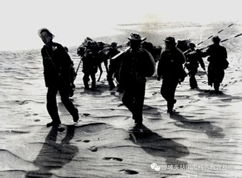 為保證在沙海中破浪前行的火車能暢通無(wú)阻,1955 年,竺可楨院士帶領(lǐng)李鳴岡等老一輩科學(xué)家“向沙漠進(jìn)軍”,來(lái)到了沙坡頭,開始了艱辛的科學(xué)研究和野外工作,建立了我國(guó)第一個(gè)沙漠綜合治理研究站——沙坡頭站。