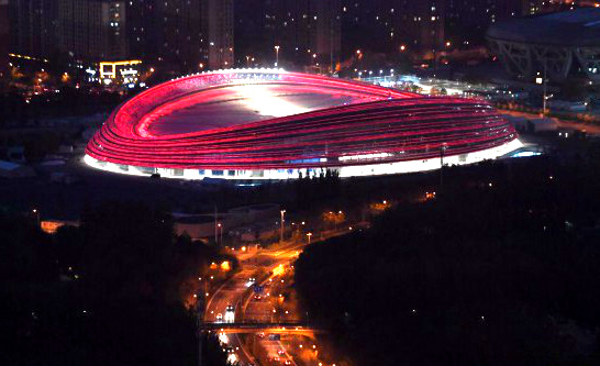 國(guó)家速滑館夜景。新華社記者 張晨霖?cái)z