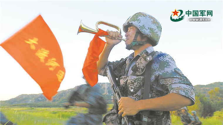 陸軍第74集團(tuán)軍某旅“大渡河連”官兵傳承發(fā)揚(yáng)“大渡河精神”,爭當(dāng)“勇士傳人”,矢志打贏,勇往直前。圖為在實(shí)戰(zhàn)化演習(xí)訓(xùn)練中,該連吹響沖鋒號。吳俊杰攝