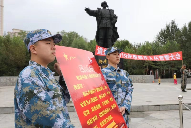 “很小的時候,父親就常常帶我來靖宇公園,給我講楊靖宇將軍的故事。這里是我生活的地方,聽著英雄的故事長大,如今,當(dāng)我也能穿上軍裝,有機會保家衛(wèi)國,在楊靖宇將軍塑像前宣誓,不僅僅是一種儀式,更是承諾!追尋英雄的足跡,傳承英雄的精神,軍營,我來了!”9月8日,在黑龍江省哈爾濱市道外區(qū)靖宇公園舉行的該區(qū)2019年度入伍新兵宣誓大會上,新兵谷鑫淼如是說道。