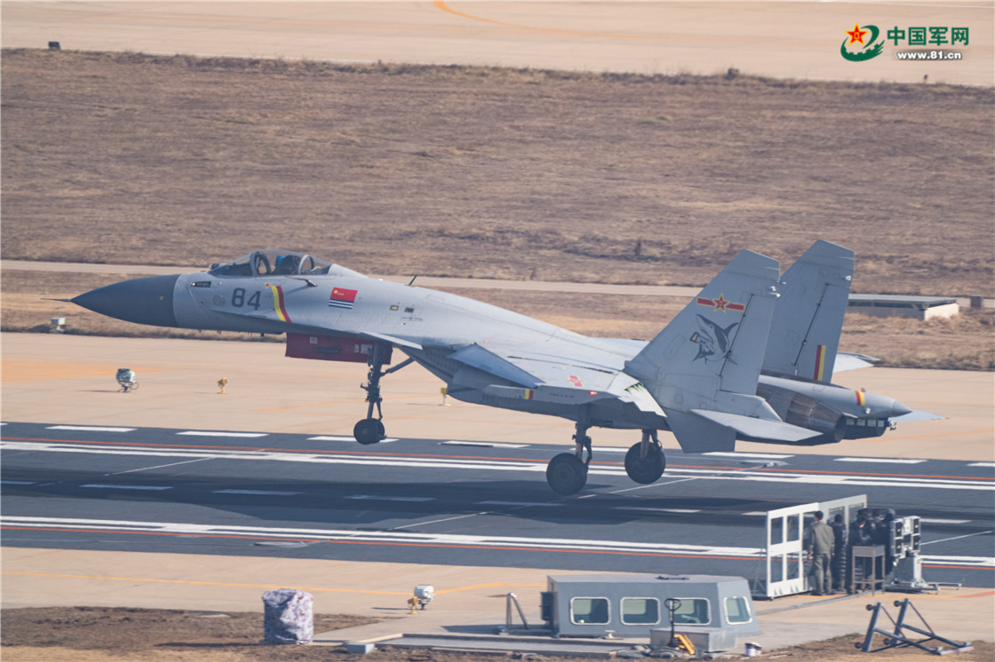 巨大的轟鳴聲中,“飛鯊”戰(zhàn)機(jī)降落在航母遼寧艦。