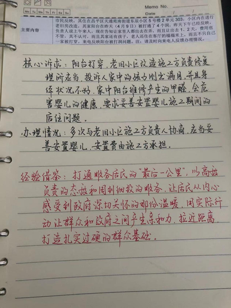 “快解決,對于群眾反映的問題,做到‘聞風(fēng)而動,接訴即辦’,提高辦理質(zhì)量和效率,實(shí)現(xiàn)小事不出社區(qū)村、大事不出鎮(zhèn)(街);暖答復(fù),對于群眾提供的建議給予充分肯定,對于群眾咨詢類問題將相關(guān)政策向群眾解釋到位,對于群眾合理訴求第一時間上門辦理,對于群眾宣泄進(jìn)行耐心疏導(dǎo),通過良好態(tài)度和親切的稱呼,增強(qiáng)群眾的獲得感和滿意度?!迸藮|告訴記者,“接訴即辦”的核心是“快”和“解”,在溝通中認(rèn)真分析群眾訴求深層原因尤為重要。