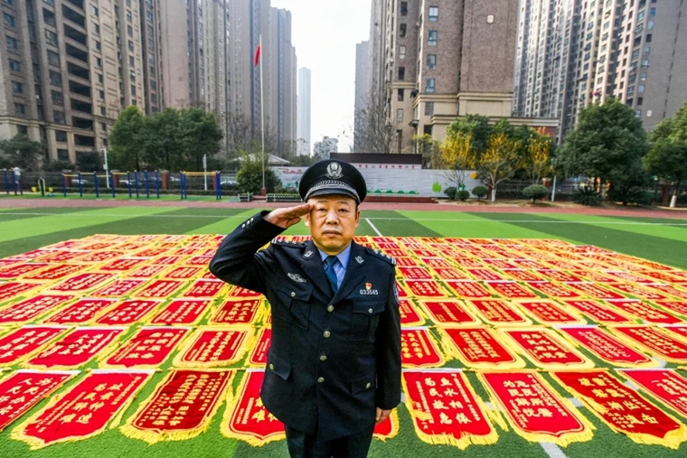 鮮紅的錦旗鋪滿一地,仿佛就是電影的幕布,快速回放著退役老兵胡永鵬破案追贓的一幕幕。
