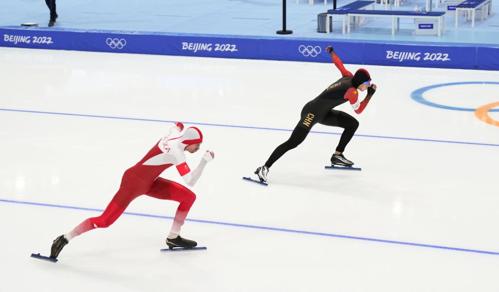 2月12日下午,國家速滑館“冰絲帶”。北京冬奧會速度滑冰男子500米比賽即將打響。