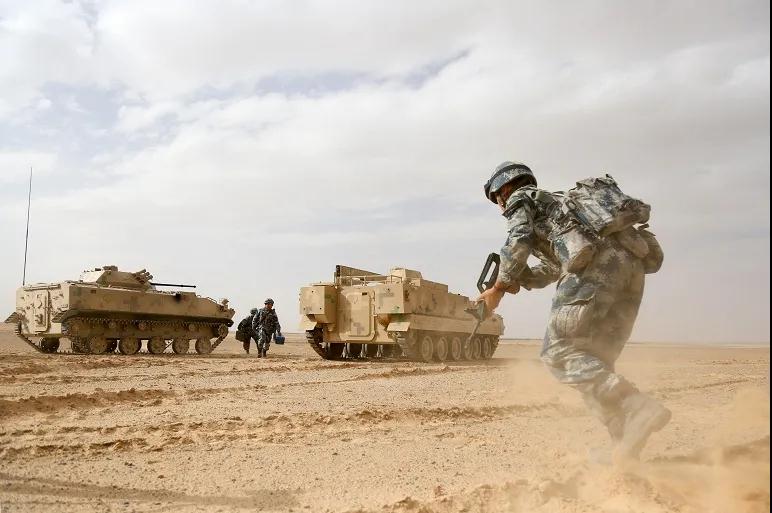8月中旬,大漠戈壁深處機(jī)群轟鳴,空降兵某旅一場實戰(zhàn)背景下的演練在昆侖山腳下拉開戰(zhàn)幕。一名名傘兵、一件件作戰(zhàn)物資、一輛輛重型裝備從天而降,天空中綻放出朵朵傘花。