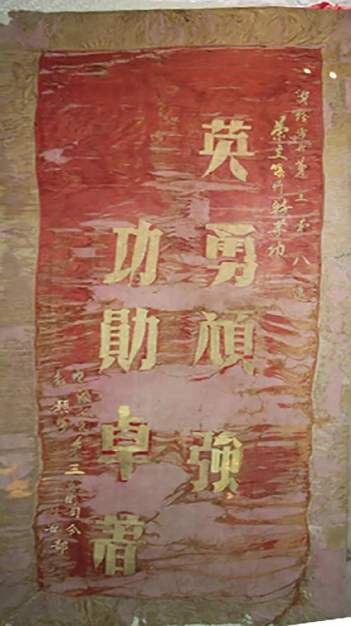 鮮紅的底色,橙黃的字體。戰(zhàn)旗上,“上甘嶺特功八連”7個大字遒勁有力。