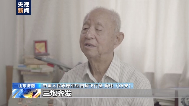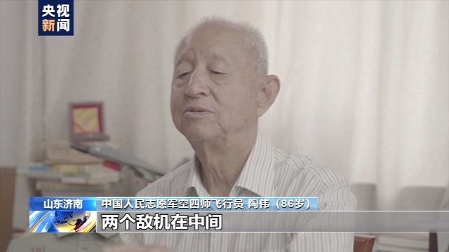原中國人民志愿軍空四師飛行員 陶偉:戰(zhàn)斗非常激烈。我的長機(jī)在前頭,兩個(gè)敵機(jī)在中間,我在后頭,就這么4架飛機(jī)就這樣,沒想到敵機(jī)開炮把長機(jī)給擊落了。