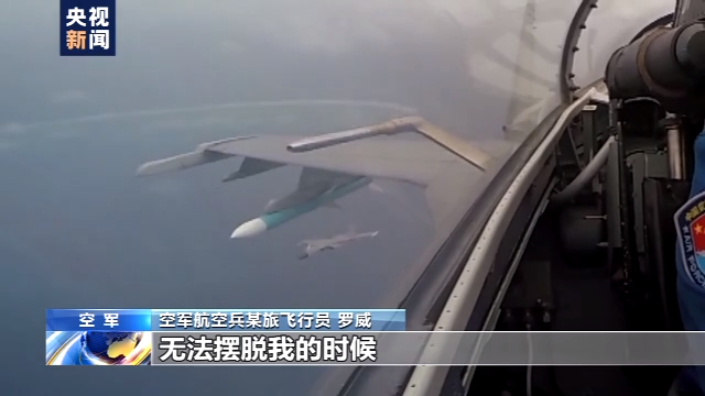 空軍航空兵某旅飛行員 羅威:已經(jīng)看清楚了他的機(jī)徽、機(jī)號(hào),對(duì)方向我們壓坡度,壓縮間隔,干擾我們對(duì)其進(jìn)行跟蹤監(jiān)視。我立即在他尾后做S轉(zhuǎn)彎,始終在他尾后跟蹤監(jiān)視,當(dāng)對(duì)方發(fā)現(xiàn)通過盤旋、壓坡度等方式無法擺脫我的時(shí)候,他們就選擇遠(yuǎn)離我方的海岸線,飛向公海。