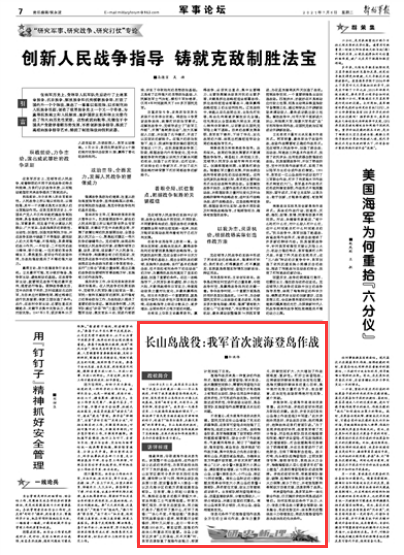 1949年8月11日,我軍在長山島打響了收復(fù)山東的最后一戰(zhàn)——長山島戰(zhàn)役,開創(chuàng)了我軍渡海登島作戰(zhàn)先河。當(dāng)時,國民黨將長山島作為北方海上反攻基地,宣稱“南有臺灣,北有長山,國軍防御,固若金湯”。我軍在一無海軍空軍、二無渡海作戰(zhàn)經(jīng)驗的情況下,一舉拔掉了國民黨安插在通往京津咽喉的釘子,創(chuàng)造了“陸軍打海軍,木船滅軍艦”的軍事奇跡。長山島戰(zhàn)役的勝利,不僅為我軍后來的渡海登島作戰(zhàn)提供了實戰(zhàn)經(jīng)驗,在戰(zhàn)術(shù)戰(zhàn)法和作戰(zhàn)指揮上至今仍有借鑒和啟示意義。