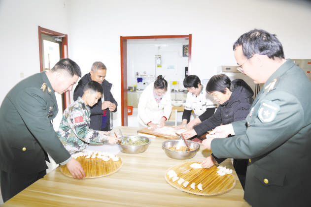 楊樹朋家人和人武部領導一起包餃子。劉明奎攝