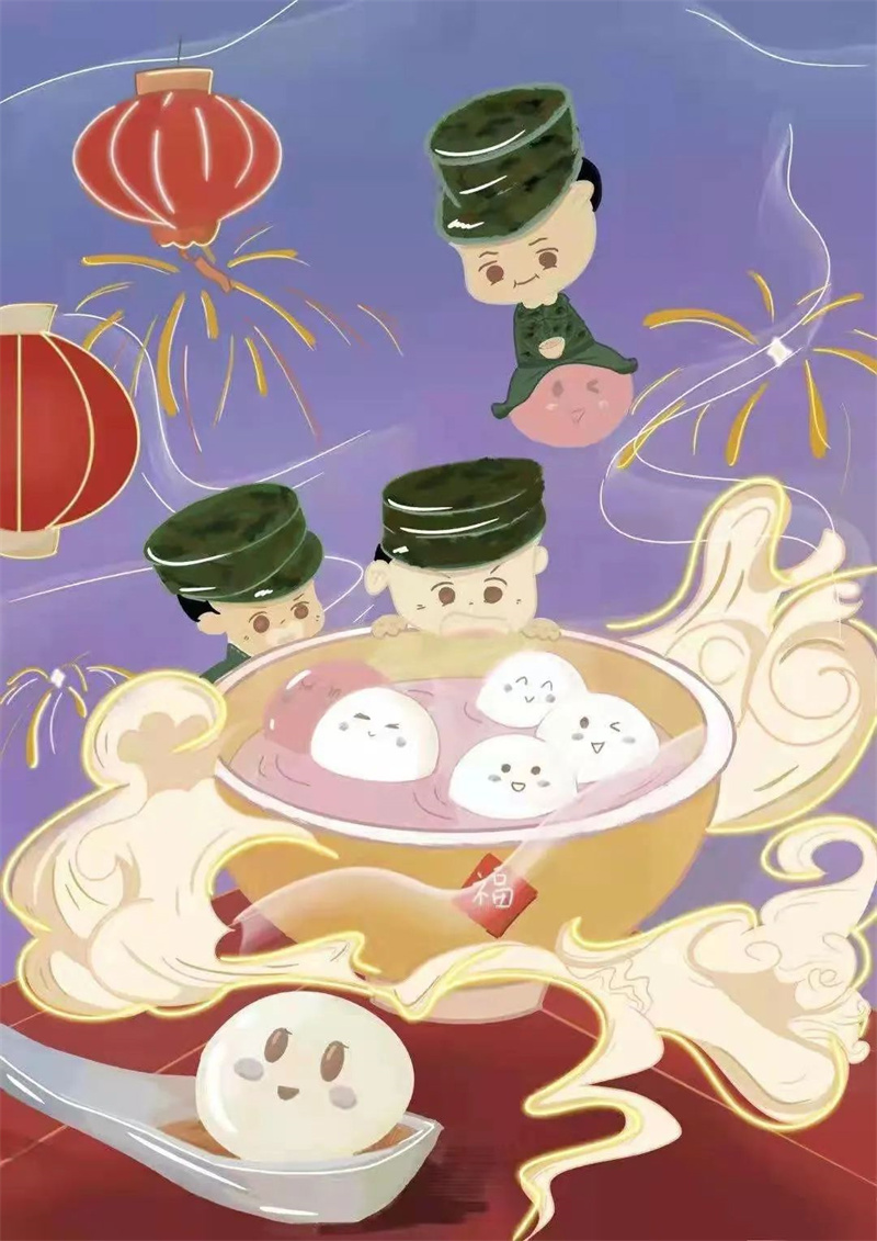 ▲和戰(zhàn)友們吃湯圓,一定很開心。