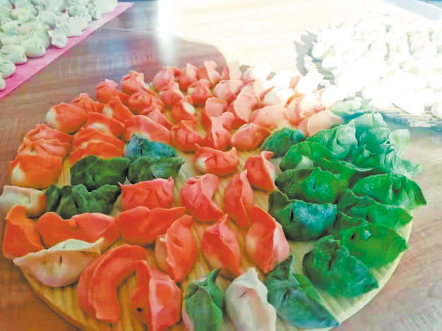 村民手工包的迎冬奧五彩餃子。王思思攝