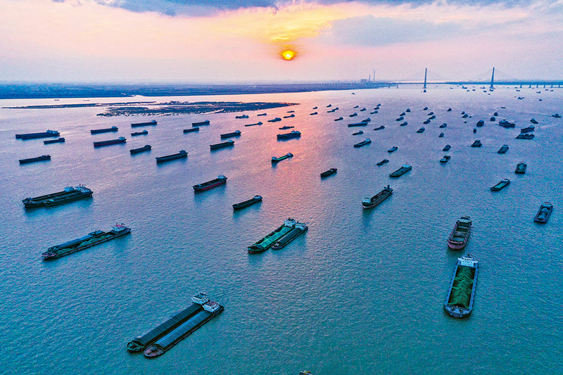 向江向海向未來,江蘇省南通市的高質量發(fā)展彰顯長三角一體化發(fā)展新氣象。這是2021年10月25日無人機拍攝的長江南通段。 新華社記者 李博/攝
