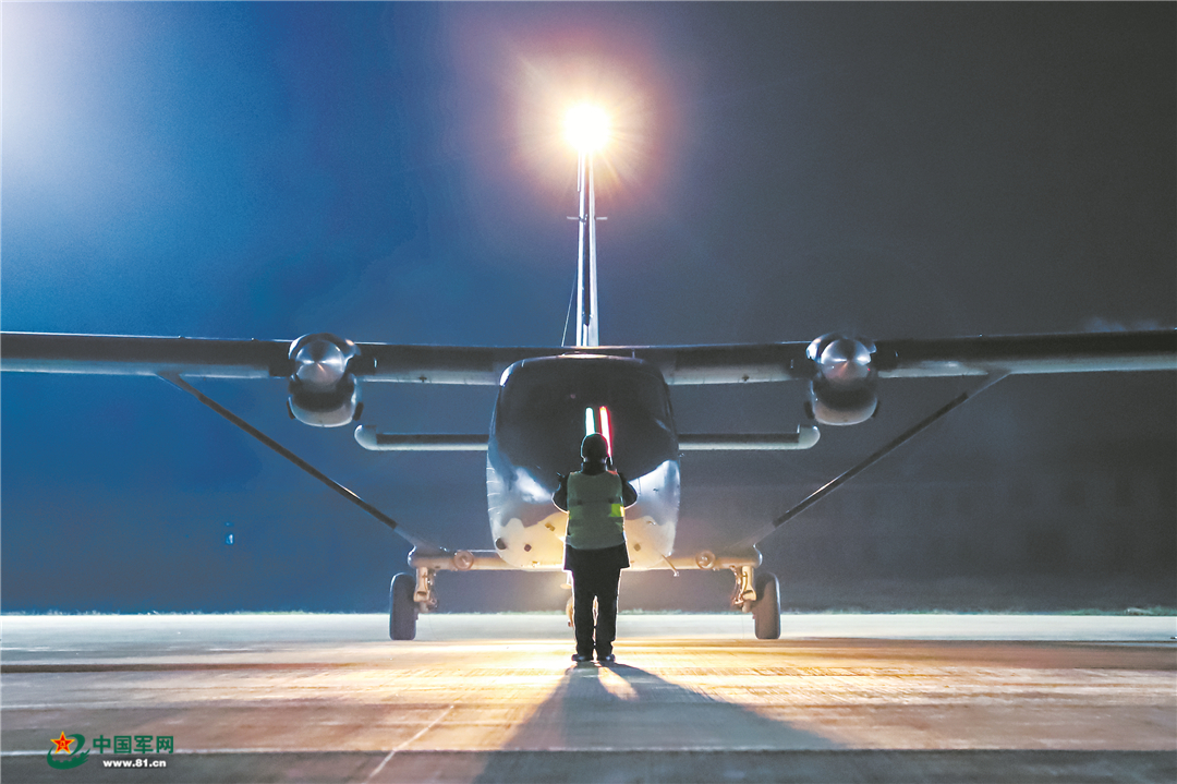 夜幕降臨,機場航燈閃爍。隨著指揮員一聲令下,多架運輸機再次接續(xù)起飛,在預(yù)定空域集結(jié)編隊。隨后,借著茫茫夜色掩護,編隊向目標(biāo)空域隱蔽機動,展開地面目標(biāo)識別等課目訓(xùn)練……